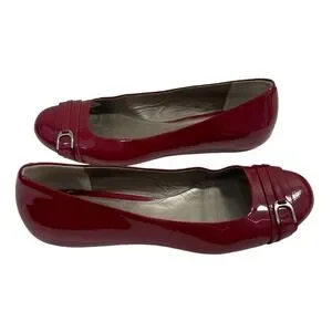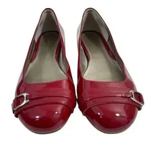 Keywords: Cole Haan, red ballet flats, patent leather shoes, ballet flats, casual shoes, women's flats, red shoes, buckle flats, comfortable flats, slip on shoes, classic ballet flats, red patent leather, Nike Air Sole