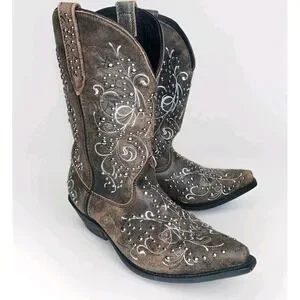 ROCKIN COUNTRY Womens Brown Leather Silver Studded Western Pull On Boots Sz 11M