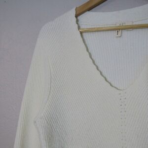 Long sleeve v-neck white sweater by Moth by Anthropologie, rayon blend. Good preloved condition, minor piling/extra fuzzies throughout. Please see pictures.