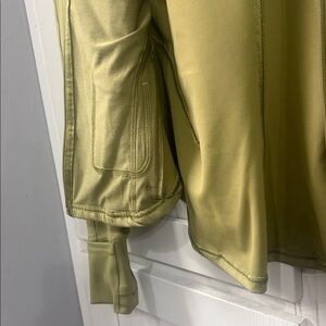 Like new Lululemon jacket. Only worn a few times pristine condition. Size 10 nice green color. Full zip two front pockets, with thumb slits on sleeves.