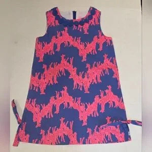 Lilly Pulitzer Windsor Giraffe Print Pink Blue Shift Dress Girls Size 8