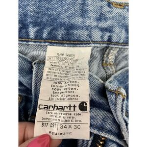 Carhartt Jeans Men 34x30 Blue Relaxed Workwear Distressed Fade Holes B17
