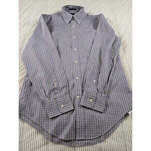Lands' End Shirt Mens 15-33 M Purple Plaid No Iron Oxford Button Down Preppy