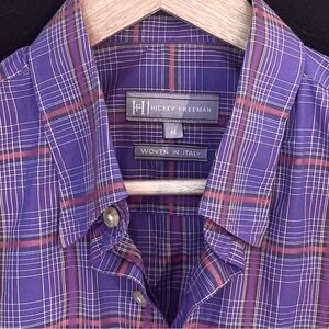 Hickey Freeman Button Down Shirt, Men’s Medium, Purple Tartan Plaid, Long Sleeve
