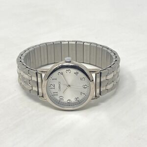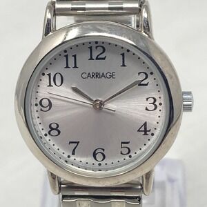 Carriage Easy Reader Watch Women 28mm Silver Tone Matte Stretch Band New Battery