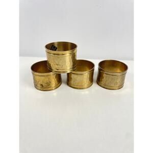 Vintage MCM Hammered Brass Round Napkin Rings 1 inch tall Set of 4