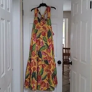 NWT FARM RIO Beaks & Bananas Cotton Maxi Dress, Sze L Retails $235
