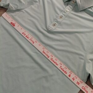 USED IN EXCELLENT CONDITION. This FJ Footjoy Polo Shirt for men in size small, features a collared neckline, button closure, and short sleeves, making it perfect for activities like golf or casual outings. The shirt is a light sea green-blue color and is made from a breathable knit fabric of polyester and spandex. It is designed for regular fit and is machine washable. Embroidered with the FootJoy logo and suitable for summer, fall, and spring seasons, this polo shirt is a stylish and comfortable choice for outdoor sports enthusiasts.