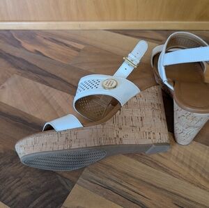 TOMMY HILFIGER White Platform Cork Sandal Shoe SZ 7.5