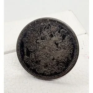 This unique antique cufflink is crafted from a genuine sterling silver Austro-Hungarian coin, featuring the intricate imperial double-headed eagle crest. Likely dating from the late 19th to early 20th century, this piece has been thoughtfully converted into a functional cufflink with a button-style back. The silver has developed a rich, natural patina, adding to its historic charm.