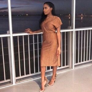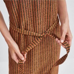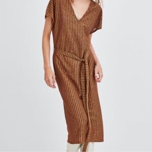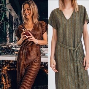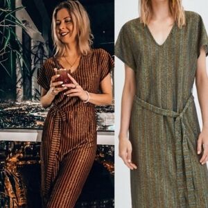 ZARA // metallic striped vneck belted midi knit