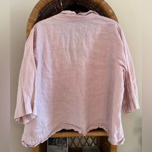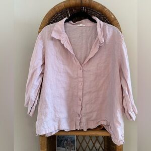 Eileen Fisher Boxy Cropped Pale Pink Linen Button Up Shirt
