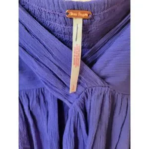 Product Details: womens sz Large blue be mine free people halter top and skirt with slit. Approx 16" pit to pit and 15" waist.