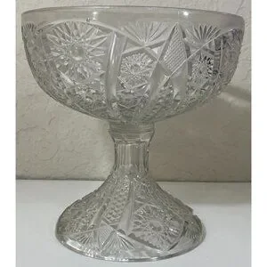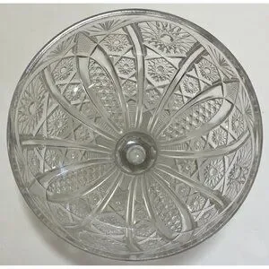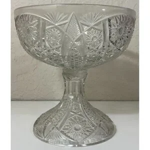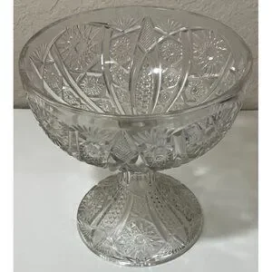 Vintage Etched Crystal Pedestal Compote Bowl Dish Candy Fruit Nuts Collectible