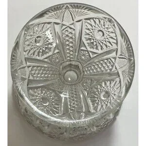 You get one crystal dish that is in good condition with minor surface wear. It stands approximately 6.5" tall, has a 6 3/8" diameter at the rim, and a 4.75" diameter at the base. Please see all pictures.