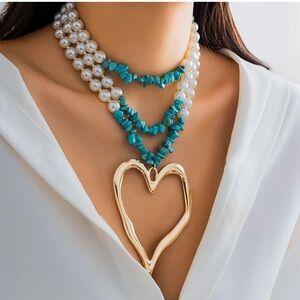New! Amber Turquoise Heart Beaded Necklace (2010) NWOT