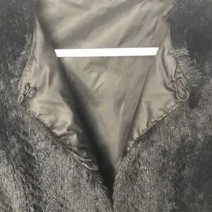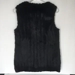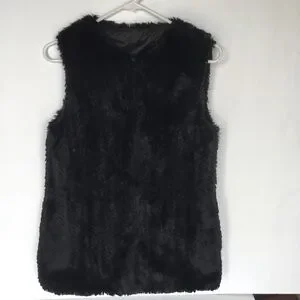 Chic black faux fur vest. Sleeveless design. Perfect for layering.