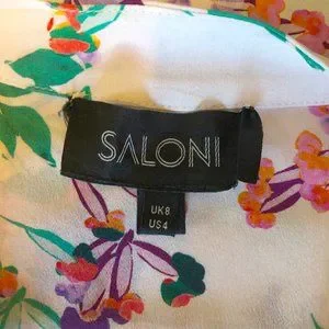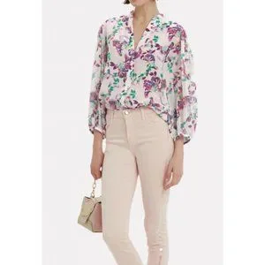 Saloni white lilac green floral print silk Chloe blouse