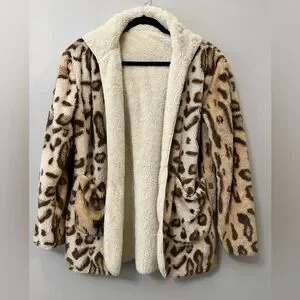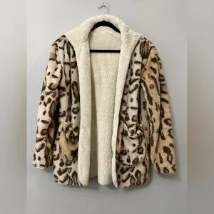 Altar’d State Reversible Faux Fur Hooded Jacket Small Leopard Print Cream Cozy