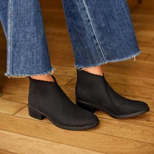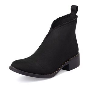 ༓ These chic v-cut booties combine modern style with all-day ease. Designed for women on the move, the stretch fabric offers a snug, flexible fit, while the slip-on design adds effortless convenience.