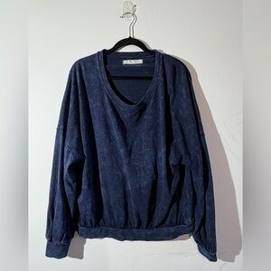 We The Free FP Navy Acid wash Long Sleeve Sz M - Oversized Boho Edgy 100% Cotton