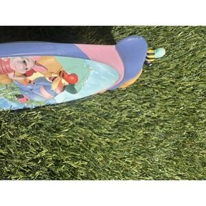 The Disney Winnie the Pooh Hunnypot Adventures 3D Plate featuring Tigger is a collectible piece from the Bradford Exchange, released in 1999 as the first issue in the series. This plate showcases the beloved Winnie the Pooh characters in a contemporary design, perfect for fans of the Disney franchise. Its weathered appearance adds to its charm and uniqueness, making it a delightful addition to any Disney collection. It's Pooh tigger piglet eeyore enjoying a rainy day under an umbrella in a river or pond