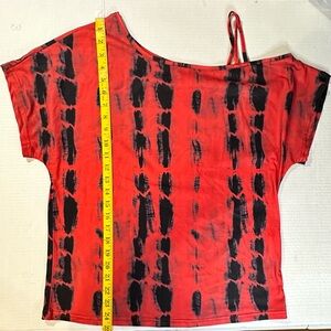 SHEIN Tie Dye Asymmetrical Neck Cut Out Tee Red Black Summer Top Casual Size Med