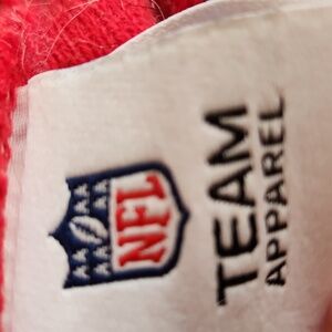 Red beanie with yellow stripe. Features 'Chiefs' text. Ideal for NFL fans.
