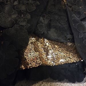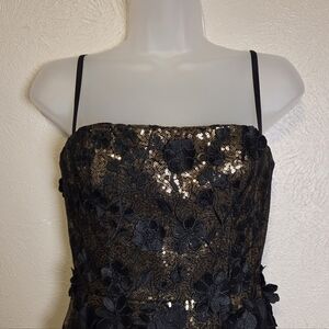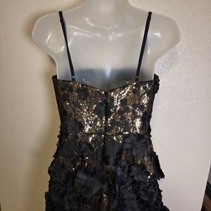 Helsi Hilma Gold Black Mini Cocktail Party Dress Floral Embellished Sequins XS