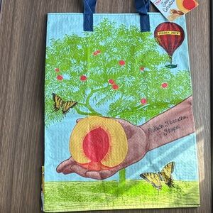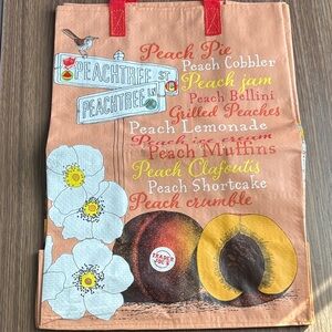 Set of two colorful Trader Joe's reusable tote bags. Features vibrant designs representing South Carolina and Georgia. NWT never been used the South Carolina bag features a picture of a peach, hot boiled peanuts and a pot resembling a seafood boil adorning the outside. The Georgia bag features a vibrant design with sweet & easy cold brew peach tea recipe on the side. Both Bags are 100% polypropylene and hold up to 6 gallons. Perfect for a collector or to take with you on your next grocery store visit.