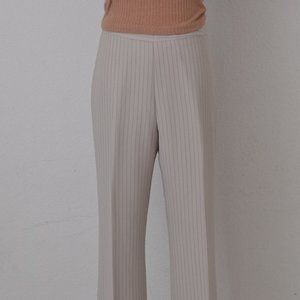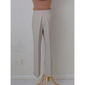 Vintage 00s Mid-Waist Beige Chalk Stripe Trousers | 30 waist
