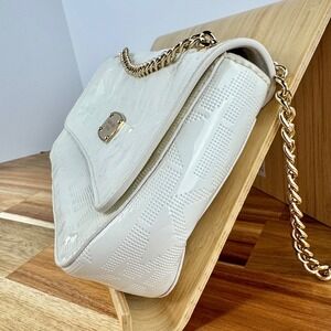 Keywords: Michael Kors, Shoulder Bag, Chain Bag, White Bag, Embossed Bag, Monogram Bag, Convertible Bag, Designer Handbag, Gold Hardware, Evening Bag, Party Bag, Crossbody Bag, MK Bag, Patent Leather