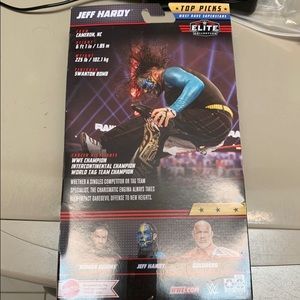 New! WWE Elite Collection “Jeff Hardy” Figure By Mattel. Wrestler Information: *From: Cameron, NC. * Weight: 225 Lbs. / 102.1 kg. * Height: 6 ft. 1 in / 1.85 m. * Finisher: Stanton Bomba