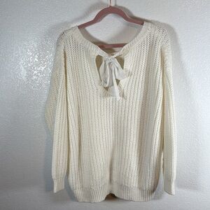 Torrid Ivory Cable Knit Hearts Sweater Ribbon Tie Keyhole Back Size 1X