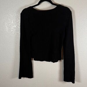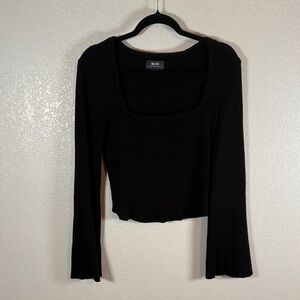 Features: long flare sleeves, square neck, cropped, ribbed knit