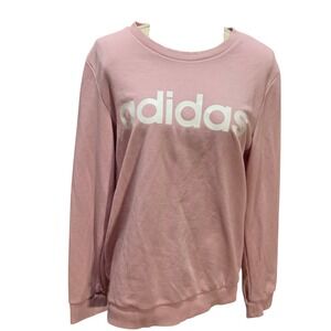 Adidas Womens Pink Crewneck Sweatshirt Logo Graphic Pullover Fleece Top