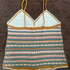 Sezane crochet tank top. Size small. Front is lined, back is unlined crochet so a bit see through. Bought new with tags and wore twice. Like new condition. It’s beautiful!