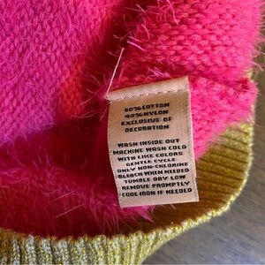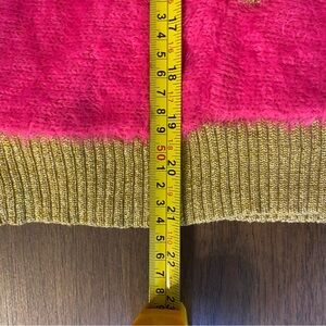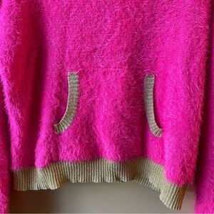 Y2K Women's Juicy Couture Pink & Gold Fuzzy Knit Sweater Size Medium Pocket