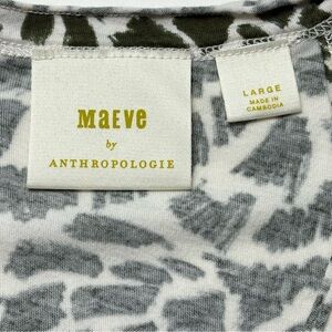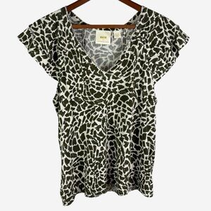 Anthropologie Maeve Catie Ruffle Sleeve Top Size L Large V-Neck Green Motif