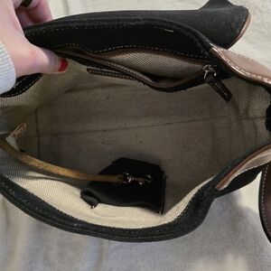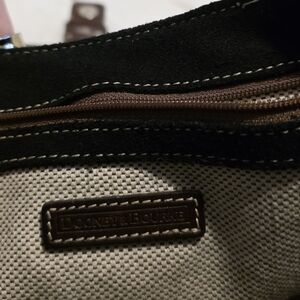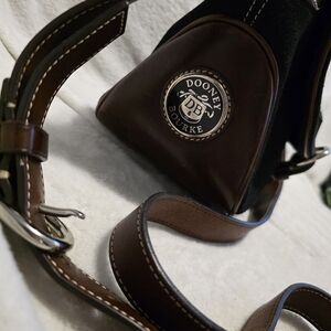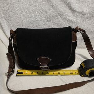 Vintage Dooney & Bourke Suede Leather Flap Crossbody Bag Black Brown Equestrian