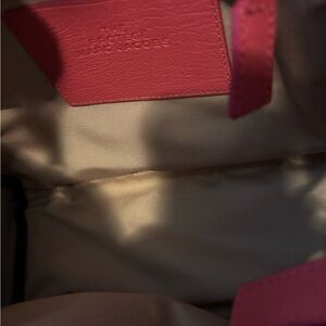 Stylish Marc Jacobs tote in vibrant pink leather. Features durable handles and elegant design. Perfect for daily use.