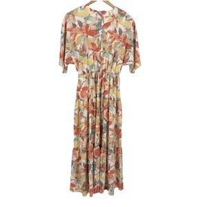Entro Floral Midi Long Line Dress Size Small Tierred Forest Fairy Cottagecore