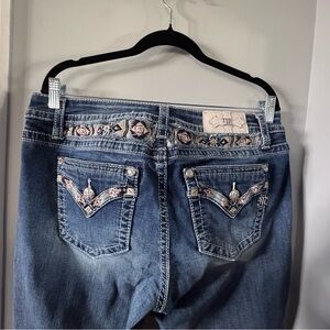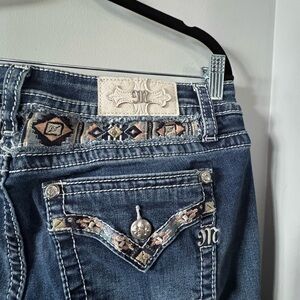 There is some wear on the cuffs of the jeans legs from wearing with cowboy boots, shown in pictures. But otherwise in perfect shape