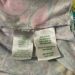 Colors: Bright Multicolor Print with white and colorful- greens, blues, pinks, and yellow