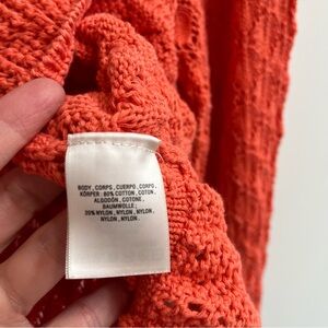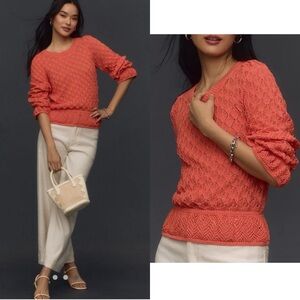By Anthropologie Flounce-Hem Pointelle Sweater Pleated Sleeves Orange Size XL