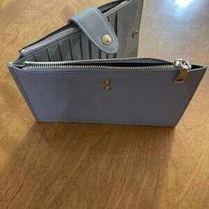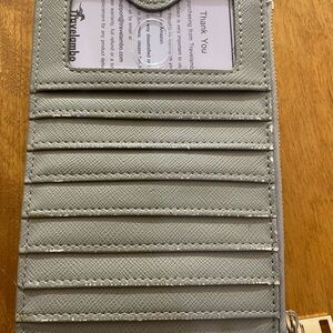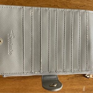 This elegant gray wallet features a sophisticated design with a touch of gold detail. Perfect for organizing your essentials with style.