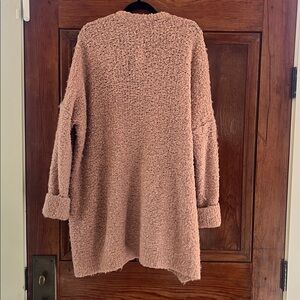 Soft and cozy blush cardigan. Perfect for layering. Adds warmth and style. Size Large. Pre loved. Color blush/light pink/tan. No rips, tears or flaws. Shows some piling because of material. Acrylic 51%, alpaca 29%, nylon 12%, spandex and elastane.