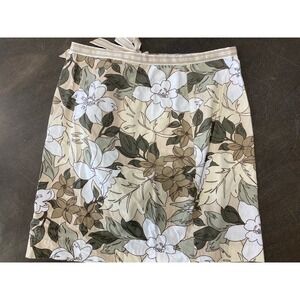 Women's Faux Wrap Skirt Tan Khaki Floral Print Women's Size Medium
