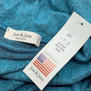 NWT Jess & Jane Women's Long Sleeve Teal Cowl Neck Sweater Front Pocket Casual Cozy Tunic Top Size S, made in USA. (WC-D42)