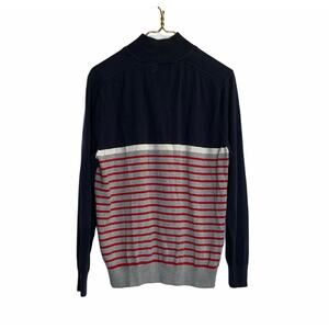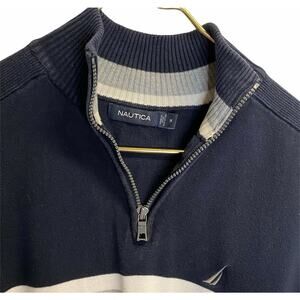 Nautica men blue red sz m striped Quarter Zip Mock Neck sweater